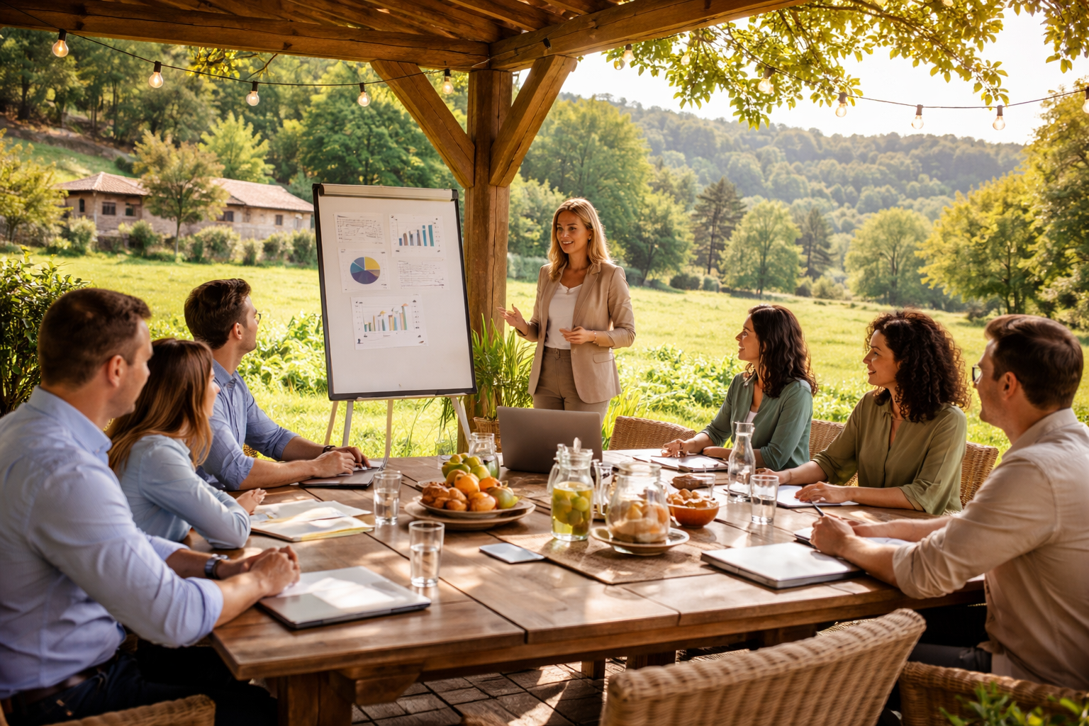 Nos gîtes mettent à votre disposition des espaces adaptés pour accueillir vos réunions professionnelles dans les meilleures conditions, alliant confort et sérénité.
